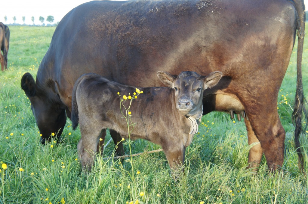 De eerste Wagyu kalfjes zijn de afgelopen weken weer geboren. De Wagyu’s kalveren geheel zelfstandig af in het weiland. Zodra ze geboren zijn, slikt de moeder ze helemaal af, zodat ze schoon en droog worden. Dit bevorderd direct de bloedsomloop. De kalfjes zijn erg sterk en dapper, meestal staan ze binnen een uur op eigen benen en lopen ze de eerste stapjes.