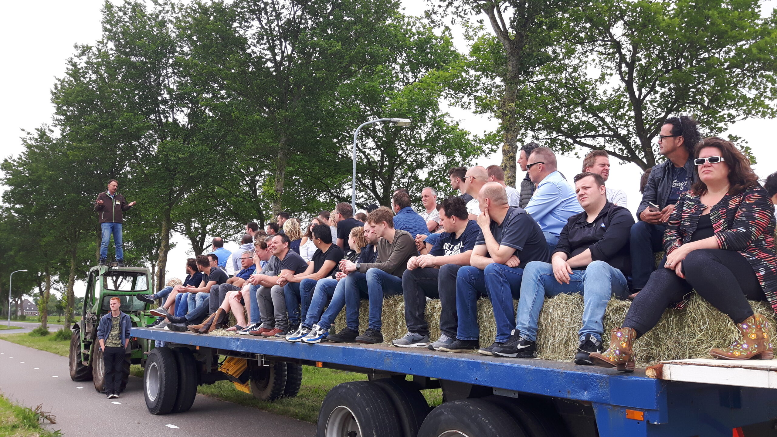 Na een ontvangst met koffie en een welkomstwoord werd een uitgebreide rondleiding gegeven door De Koeientuin. Vervolgens tijd voor een glaasje Prosecco met een paar heerlijke Wagyu hapjes. Daarna met z’n allen op de platte kar met hooibalen en naar het land waar de Wagyu’s met hun kalfjes lopen, waar ook weer uitleg werd gegeven.