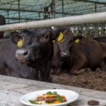 Weer terug op de boerderij schoof iedereen aan de lange tafel waar 3 heerlijk smaakvolle Wagyu gerechten geserveerd werden.